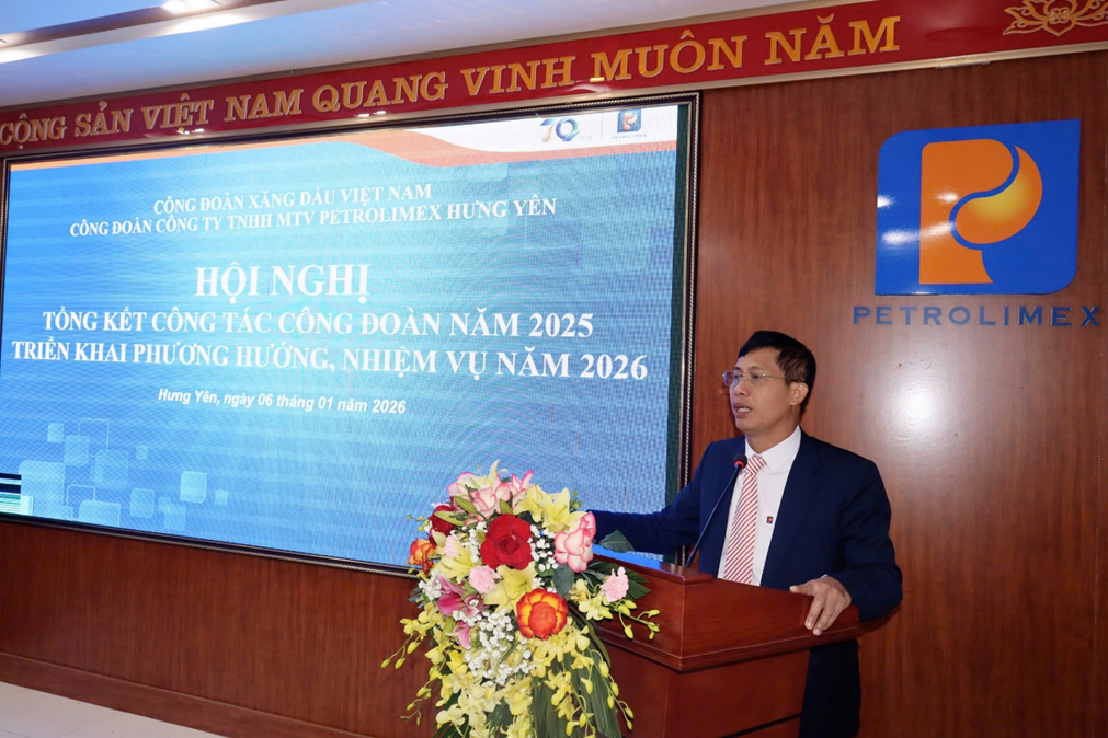 Phát biểu chỉ đạo tại hội nghị, đồng chí Trần Tấn Đại - Bí thư Đảng ủy, Chủ tịch Công ty ghi nhận và biểu dương những nỗ lực, cố gắng của Ban Chấp hành Công đoàn Petrolimex Hưng Yên trong việc đồng hành cùng doanh nghiệp, chăm lo đời sống người lao động, góp phần xây dựng mối quan hệ lao động hài hòa, ổn định. Đồng chí đề nghị trong năm 2026, Công đoàn tiếp tục phát huy vai trò là cầu nối giữa người lao động và doanh nghiệp; đẩy mạnh các phong trào thi đua yêu nước, phát huy sáng kiến, cải tiến kỹ thuật; tích cực phối hợp với chuyên môn, góp phần hoàn thành thắng lợi các chỉ tiêu, nhiệm vụ sản xuất kinh doanh của Công ty.