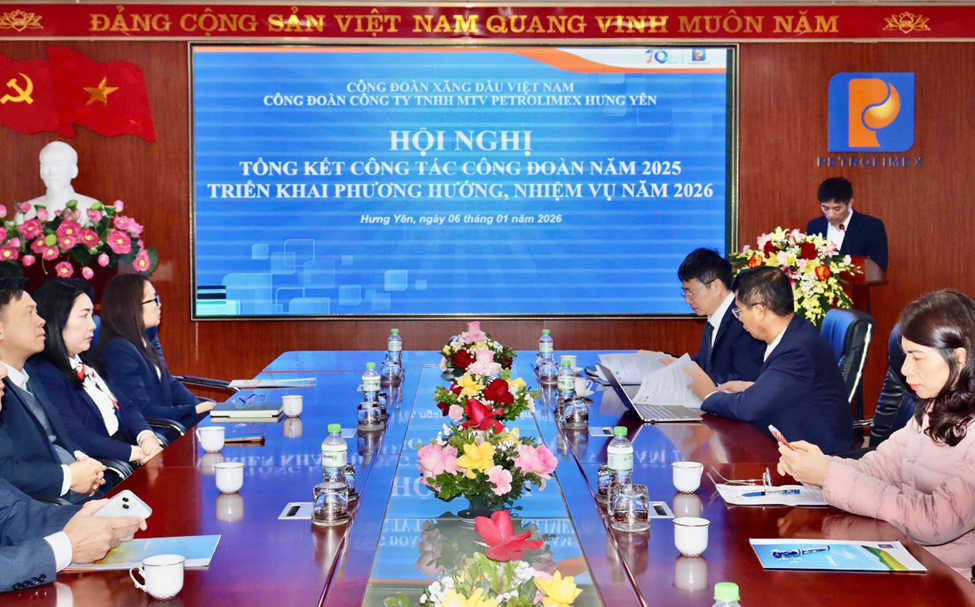 Sáng ngày 06/01/2026, Công đoàn Công ty TNHH MTV Petrolimex Hưng Yên đã long trọng tổ chức Hội nghị tổng kết công tác Công đoàn năm 2025 nhằm đánh giá kết quả hoạt động Công đoàn năm 2025 và triển khai phương hướng, nhiệm vụ trọng tâm trong năm 2026.