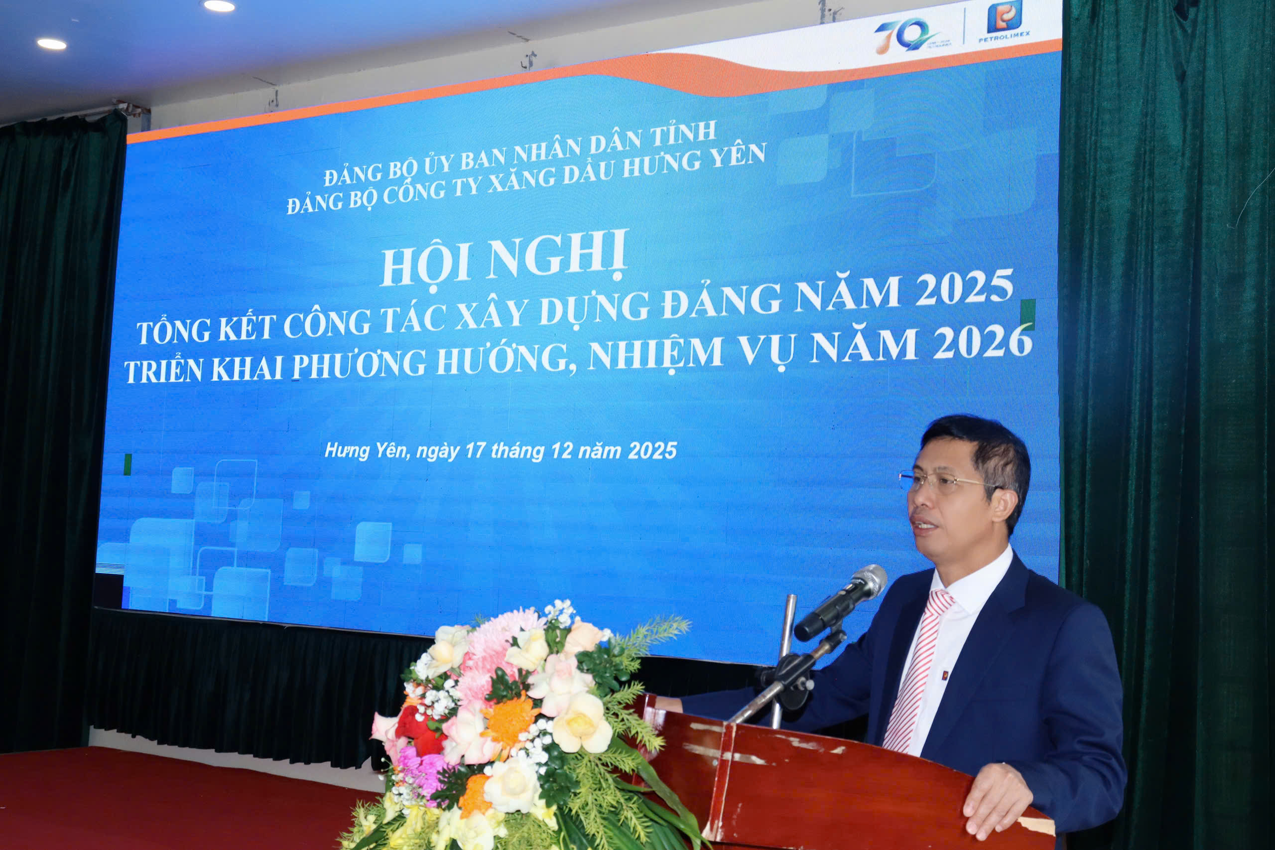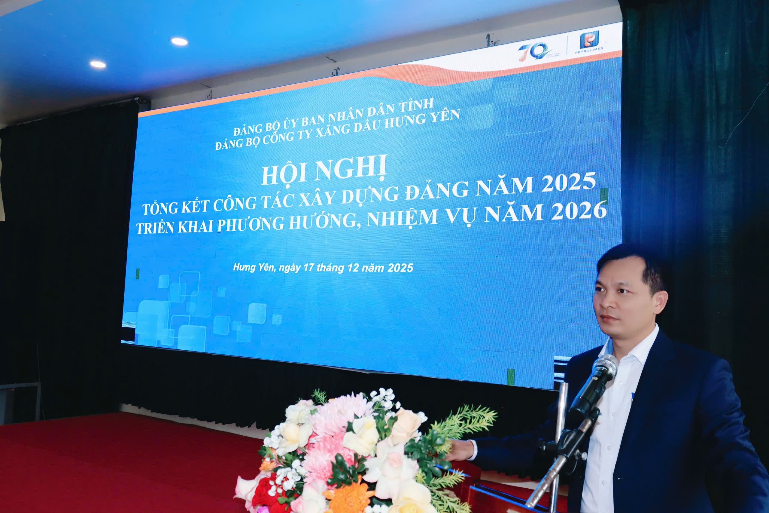 Sáng ngày 17/12/2025, Đảng bộ Công ty Xăng dầu Hưng Yên đã tổ chức Hội nghị tổng kết công tác Đảng năm 2025, triển khai phương hướng, nhiệm vụ năm 2026. Dự chỉ đạo Hội nghị có đồng chí Trần Tấn Đại - Ủy viên BCH Đảng bộ UBND tỉnh, Bí thư Đảng ủy cùng các đồng chí trong Ban Chấp hành Đảng bộ, Ban điều hành Công ty và toàn thể Đảng viên trong Đảng bộ Công ty.